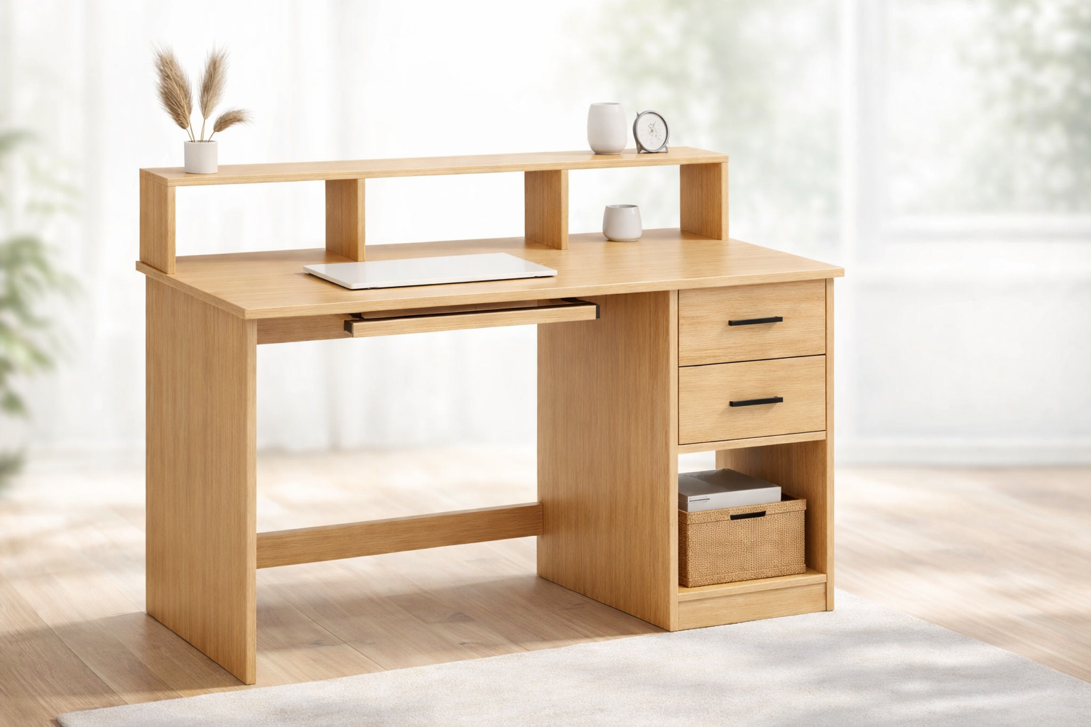 Cette armoire moderne au design épuré associe un revêtement effet bois chaleureux à une structure métallique noire pour un style à la fois élégant et contemporain. Dotée de deux portes avec poignées discrètes, elle offre un espace de rangement spacieux idéal pour organiser vêtements, accessoires ou linge de maison.
